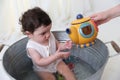 Tolo Bio Teatime Shape Sorter tarjoaa erilaisia muotoja ja värejä tutkittavaksi ja järjesteltäväksi. Useimmat tämän ikäiset vauvat tarvitsevat aluksi apua leikkimiseen. Tämä tarjoaa loistavan tilaisuuden opettaa lapselle eri muotoja ja näyttää hänelle mitä tapahtuu kun yrität laittaa muodon väärään koloon.