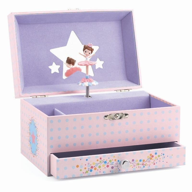 Musiikki alkaa soimaan, kun kansi avataan ja ballerina pyörii peilin edessä.